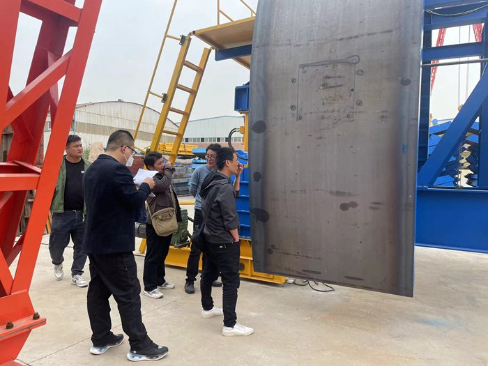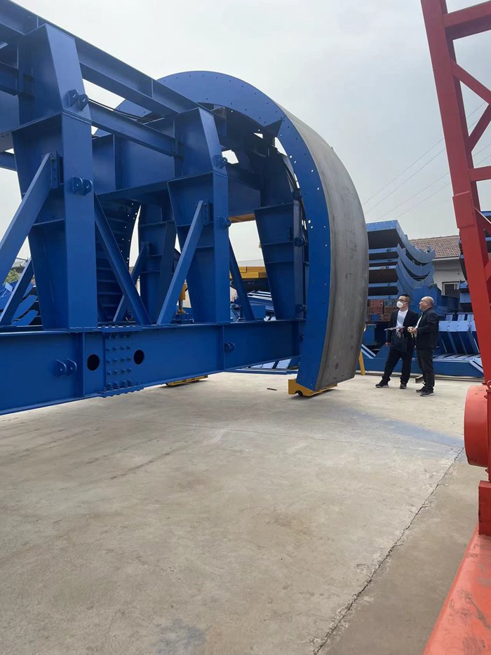 2023年4月13日,中鐵六局集團(tuán)有限公司沈陽(yáng)地鐵一號(hào)線1標(biāo)項(xiàng)目經(jīng)理部檢查驗(yàn)收專(zhuān)家組蒞臨我廠,對(duì)訂購(gòu)我廠生產(chǎn)的二襯臺(tái)車(chē)進(jìn)行檢查測(cè)量驗(yàn)收。在為期一天的驗(yàn)收工作中,通過(guò)聽(tīng)取現(xiàn)場(chǎng)匯報(bào),實(shí)地測(cè)量,調(diào)試、繪圖3D模擬,對(duì)我廠的二襯臺(tái)車(chē)進(jìn)行了細(xì)致的檢查驗(yàn)收。